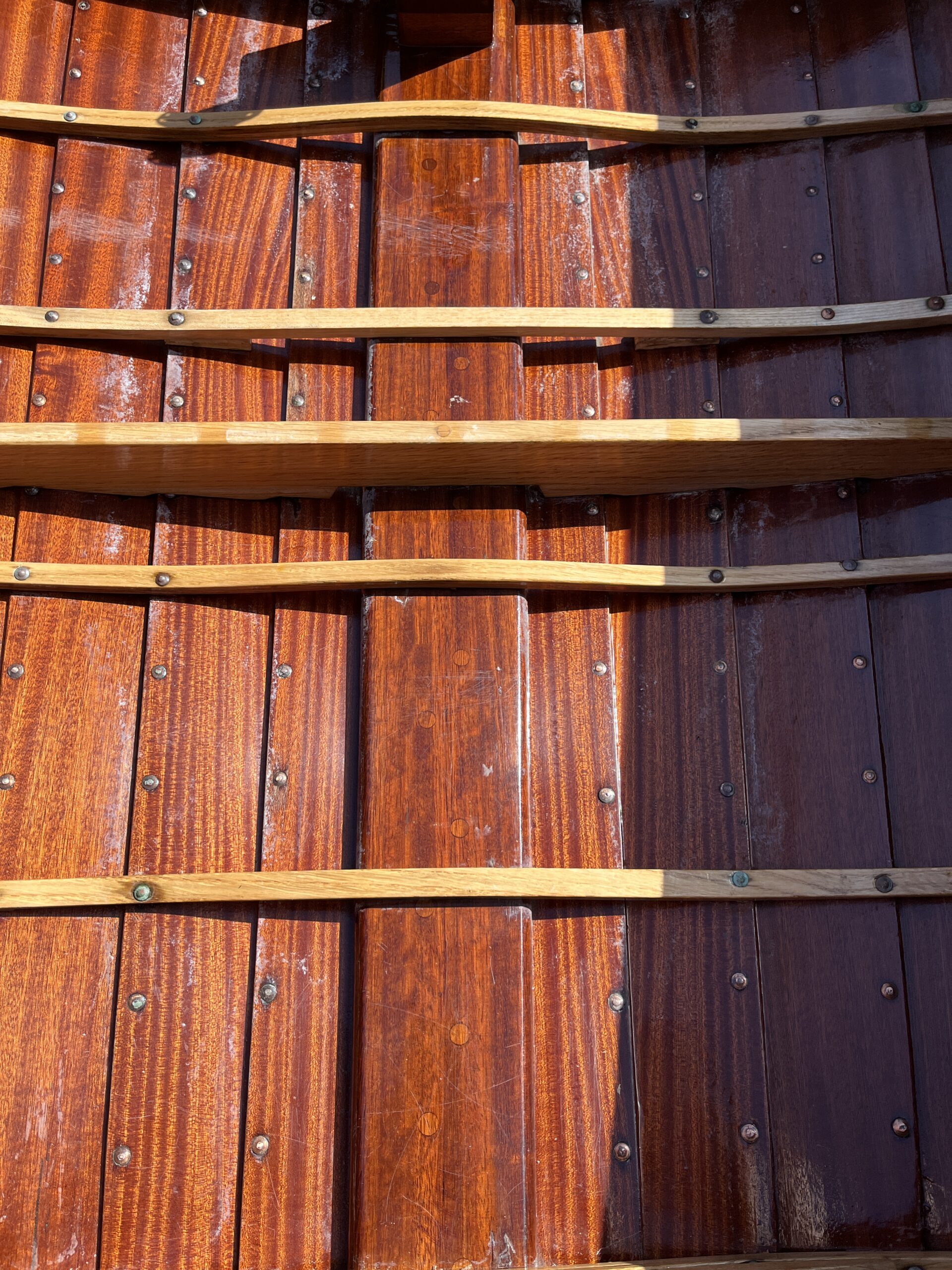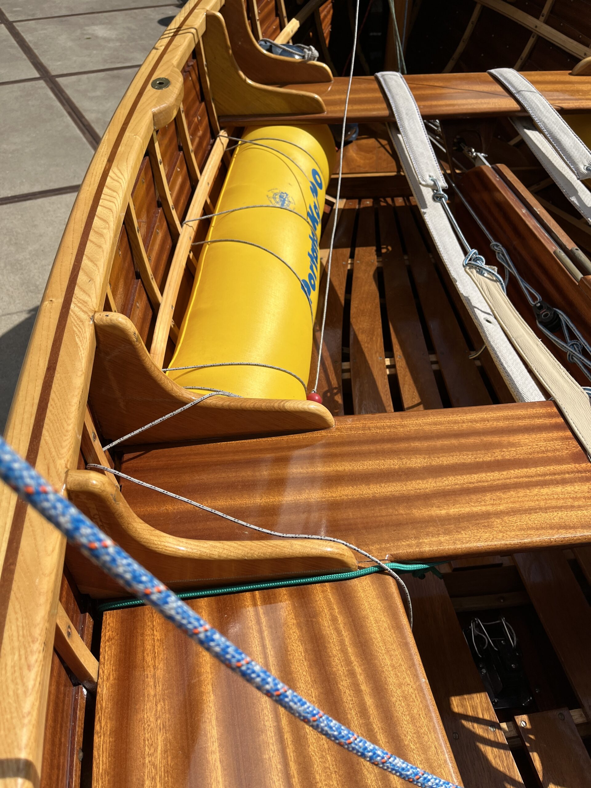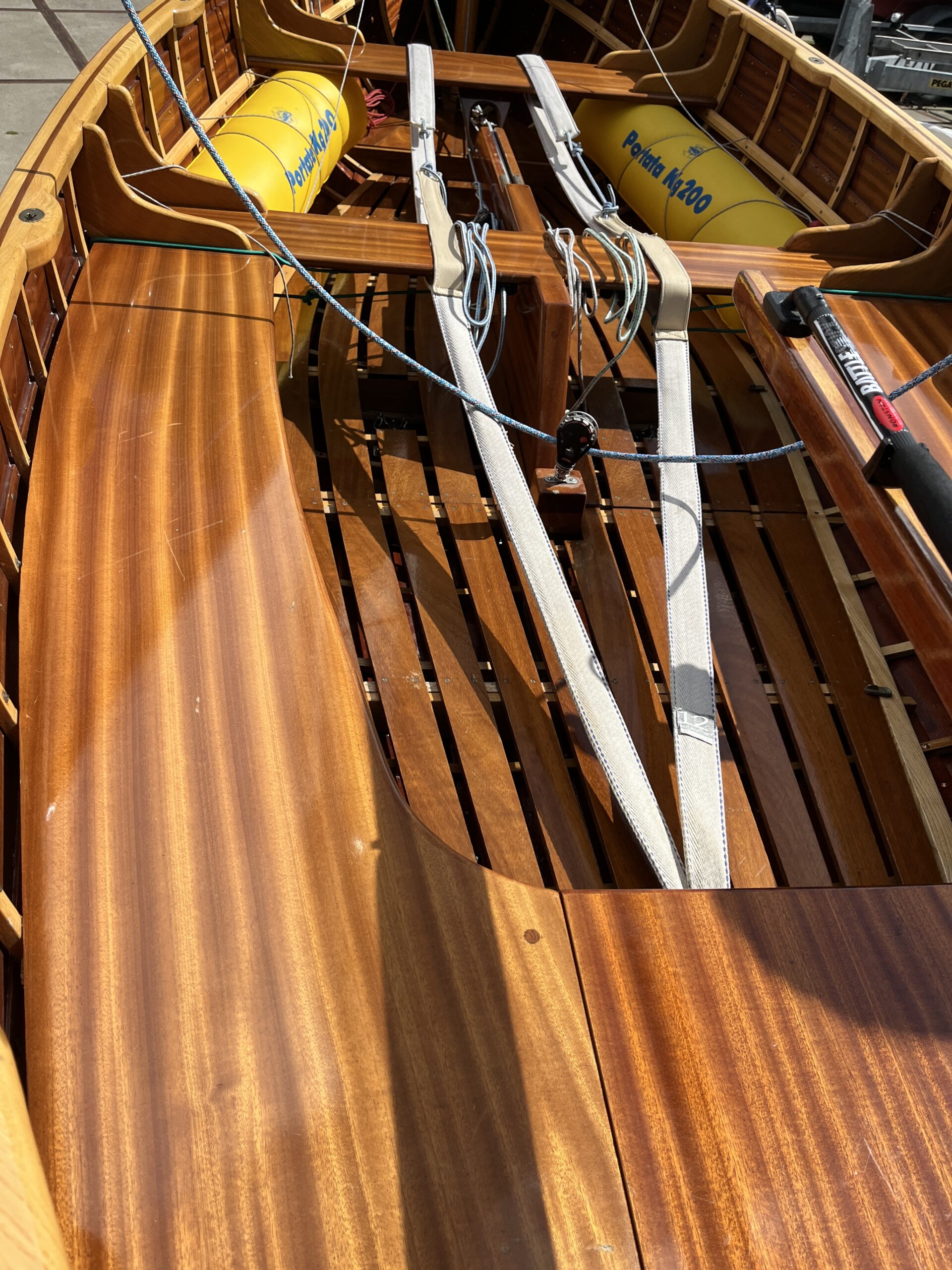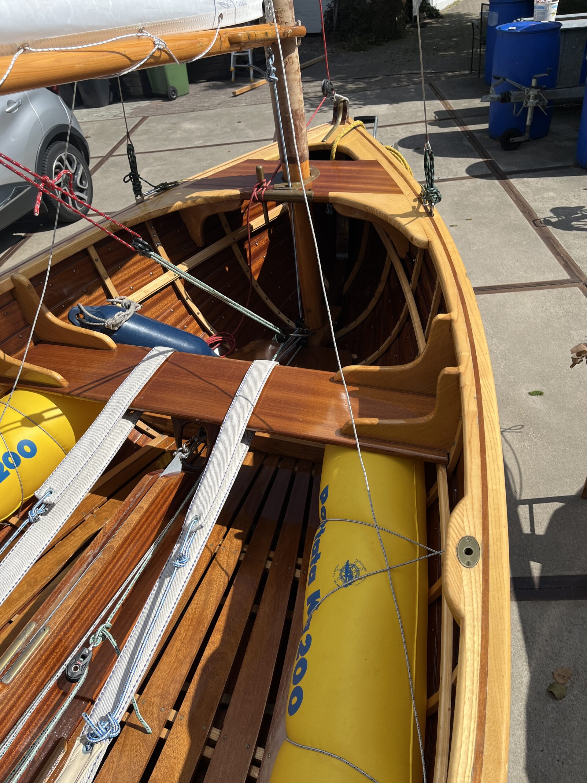 Romp van mahonie met essen boordlatten en spanten. De boot is compleet zeilklaar en voorzien van een geldige meetbrief. Het tuig bestaat uit een Hagoort uit 2021 en een Molenaar uit 2012.
